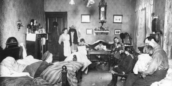 Wohnungsnot in Deutschland 1919 – Elf Menschen in einer Stube und Küche.H