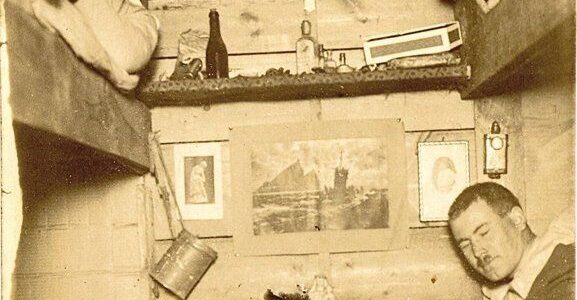 Das Foto aus dem Jahr 1917 gewährt einen seltenen Einblick in eine Welt, die den meisten Menschen des Ersten Weltkriegs verborgen blieb: tief unter der Erdoberfläche, fern vom unmittelbaren Artilleriefeuer, befand sich ein deutscher Unterstand, sorgfältig ausgebaut und überraschend komfortabel….