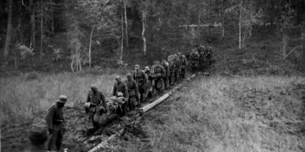 Marsch durch das Moor: Seltene Frontaufnahme zeigt die harte Realität an der Ostfront.H