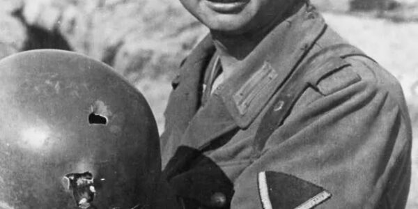 Ein Zufall, der Leben rettete: Seltene Frontaufnahme zeigt beschädigten Stahlhelm eines deutschen Soldaten!.H