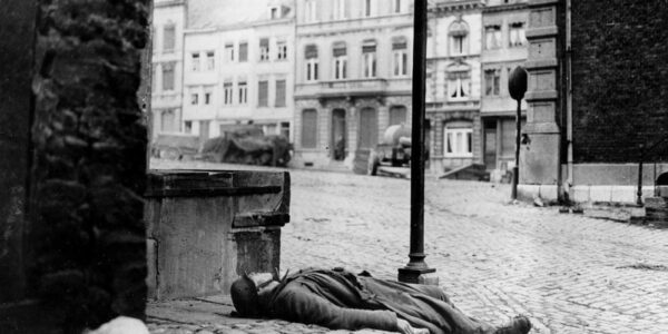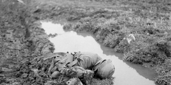 Die brutale Realität des Krieges: Ein gefallener deutscher Soldat im Schützengraben bei Hargicourt, Frankreich – 19. September 1918.H