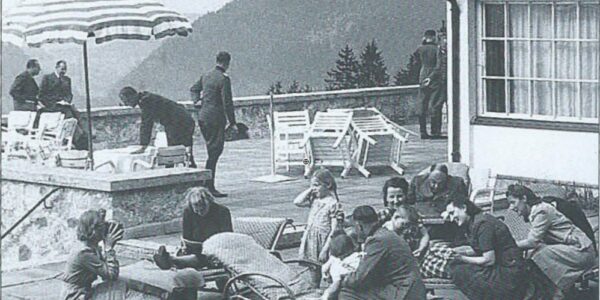 Gäste auf dem Berghof in einem seltenen Bild aus dem Zweiten Weltkrieg, 1942 .H