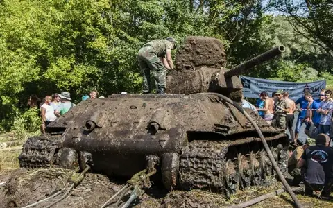 Was verbirgt sich in der Tiefe? Ein T-34-Panzer aus dem Zweiten Weltkrieg wurde nach 80 Jahren im Fluss entdeckt.H