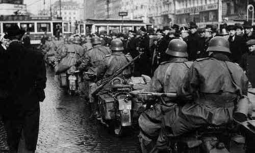 Am 15. März 1939 marschierten deutsche Truppen in Prag ein. Diese Bilder, die unter anderem im Magazin Life veröffentlicht wurden, zeigen einen ungewöhnlichen und gleichzeitig symbolträchtigen Anblick: deutsche Soldaten, die auf ihren BMW-Fahrrädern durch die Straßen der tschechischen Hauptstadt fahren….