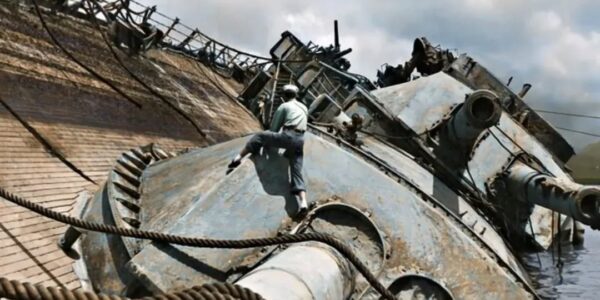 Es gibt Bilder, die auf den ersten Blick wie einfache Momentaufnahmen wirken, doch in Wahrheit ganze Kapitel der Weltgeschichte in sich tragen. Das hier gezeigte Foto gehört genau zu dieser Kategorie: Ein gewaltiges Wrack, halb im Wasser versunken, seine stählernen…