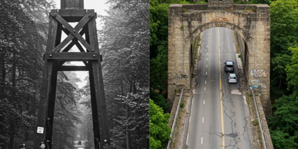 Zwischen dichten Wäldern, wo die alten Straßen Deutschlands sich durch die Landschaft schlängeln, steht ein Monument, das Generationen überdauert hat – ein gewaltiger steinerner Adler über einer Brücke. Einst errichtet als Symbol von Stärke, Macht und Fortschritt, ist er heute…