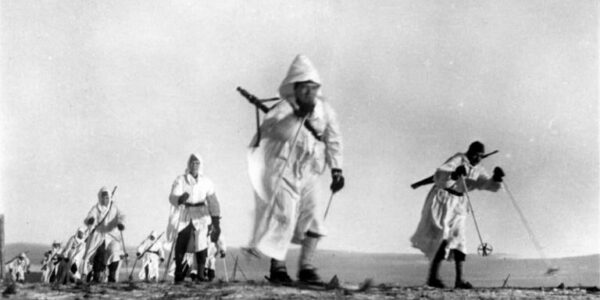 Die Landschaft liegt unter einer dicken Schneedecke, die alles dämpft: Geräusche, Bewegungen, selbst Gedanken. In dieser stillen, frostigen Weite bewegen sich deutsche Soldaten in weißen Tarnmänteln, beinahe unsichtbar vor dem Hintergrund der vereisten Felder und kahlen Bäume. Das Bild, das…