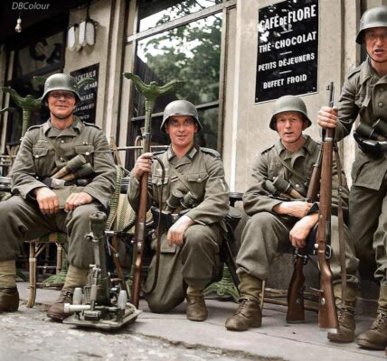 Das Bild dokumentiert einen Moment zwischen Front und Fremde, zwischen Vergangenheit und Ungewissheit. In ihren Blicken liegt kein Stolz mehr – nur Müdigkeit, vielleicht Scham, vielleicht Erleichterung, dass der Kampf vorbei ist.