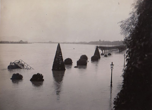 | The partially frozen Rhine water and the old Bonn Rhine Bridge, 1927 |