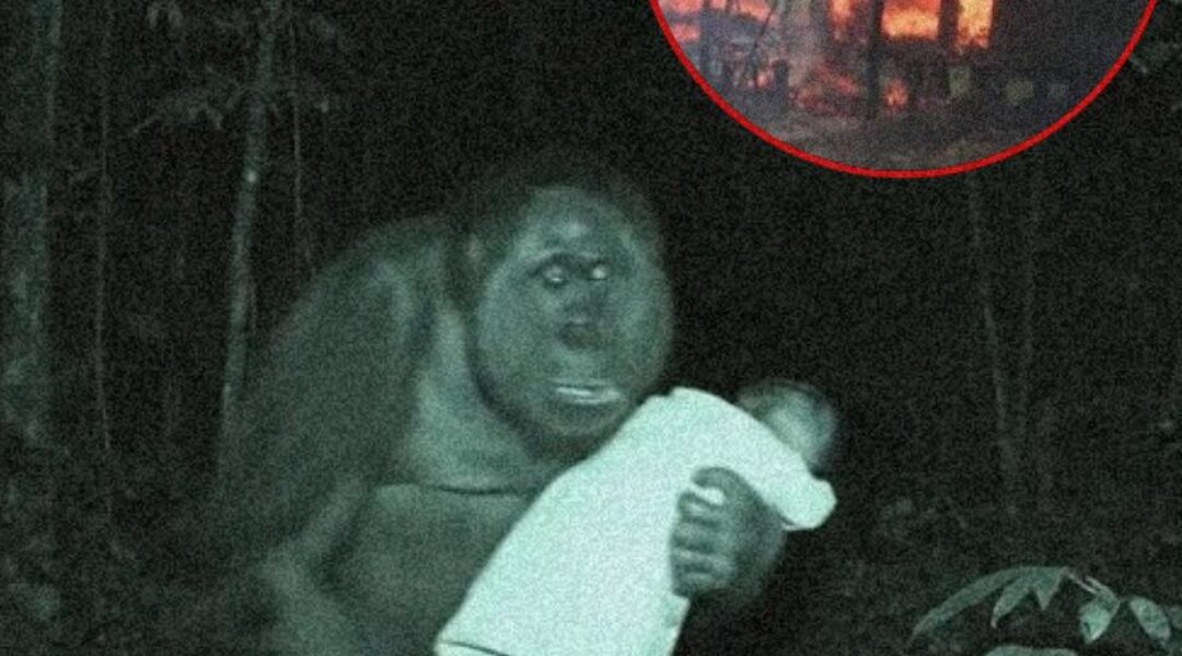 In the heart of Borneo’s rainforests, where the air hums with life and the canopy shelters secrets, a single lightning bolt sparked a story that defies belief—a tale of destruction, survival, and an extraordinary act of compassion. When a fire razed a small village to ash, leaving researchers and villagers grappling with loss, one moment captured on a grainy trail camera changed everything: an orangutan, emerging from the smoke, cradling a human baby in its arms. This wasn’t just a rescue; it was a profound act of empathy from one of the rainforest’s most endangered creatures, a reminder of the invisible threads binding all life. As the world buzzes with this story—from scientific journals to viral X posts—let’s dive into the events, the science behind orangutan behavior, and the powerful message this miracle sends in an age of environmental crisis. Prepare to be moved by a narrative that’s as heart-wrenching as it is hopeful, one that’s sparking awe and conversation everywhere.