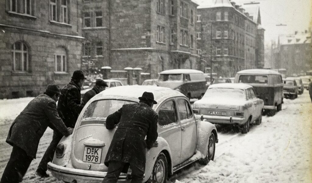 Der VW Käfer war damals das Auto des Volkes. Er stand für Aufbruch, Mobilität und ein Stück Freiheit. Millionen Deutsche fuhren ihn – zur Arbeit, zum Einkaufen, zu Verwandten. Doch im tiefen Schnee zeigte sich auch seine Grenze. Der kleine Heckmotor kämpfte, die Reifen gruben sich ein, und oft blieb der Wagen einfach stehen.
