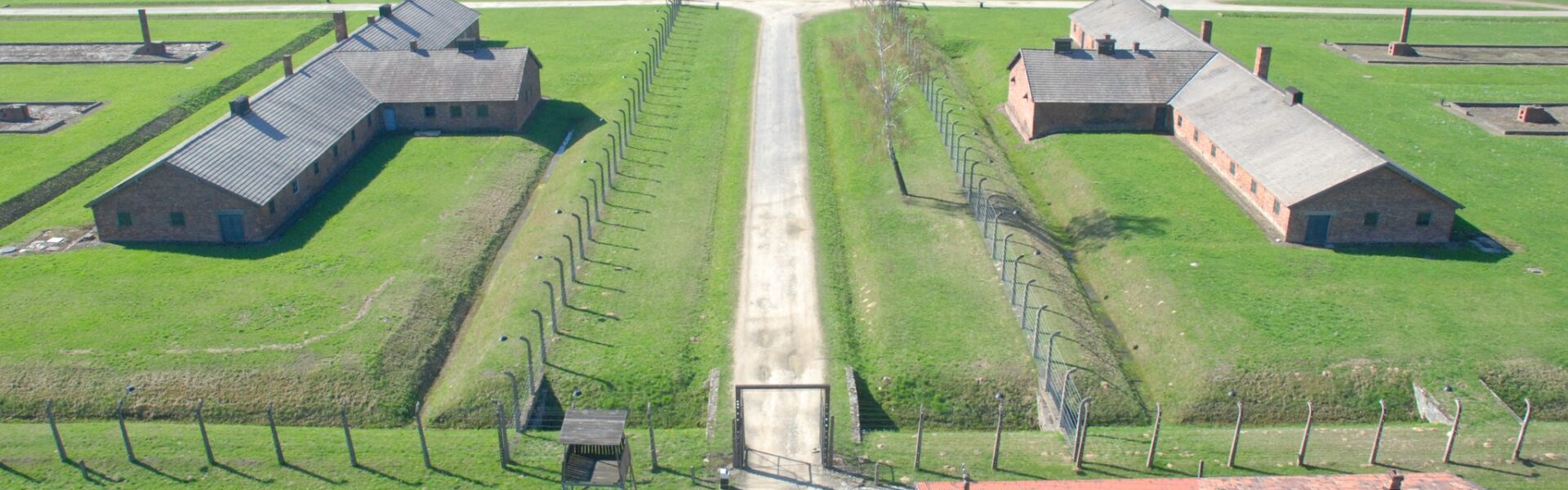 Von oben lässt sich die Struktur des Lagers deutlich erkennen: parallele Reihen von Holz- und Backsteinbaracken, durchzogen von Zäunen und Wachtürmen. Die Baracken, in denen Tausende Menschen unter menschenunwürdigen Bedingungen untergebracht waren, wirken wie geometrische Muster in einer erschreckend präzisen Ordnung. Diese Ordnung diente nicht dem Schutz oder der Versorgung der Insassen – sie diente der Kontrolle, der Entmenschlichung und letztlich der Vernichtung.