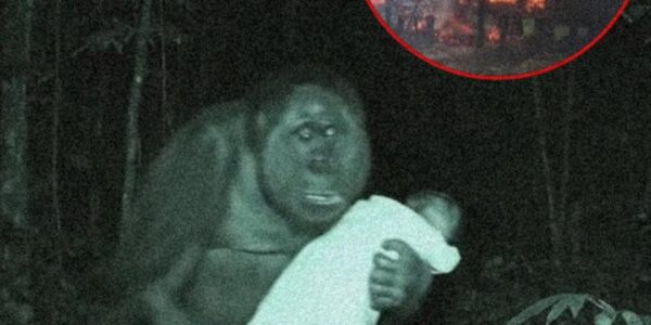 A MIRACLE CAUGHT ON CAMERA: As Fire Ravaged the Village, a WILD ORANGUTAN Emerged from the Flames, Cradling a Human Baby in Its Arms.H