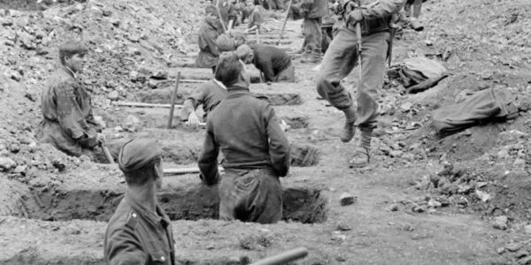 Ehre im Angesicht der Niederlage – deutsche Gefangene begraben ihre Kameraden, Normandie 1944.H