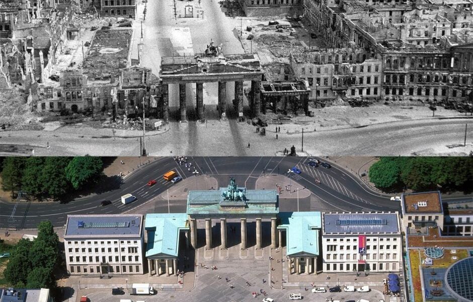 Am 8. Mai 1945 kapitulierte die deutsche Wehrmacht und beendete damit den Zweiten Weltkrieg in Europa. Berlin lag jedoch in Trümmern. Historische Fotos vom Kriegsende geben einen Einblick in die zerstörte Stadt. Besonders faszinierend ist der Kontrast zur Gegenwart: Wie präsentiert sich Berlin Jahrzehnte später? Welche Gebäude stehen noch, und wo hat sich das Stadtbild völlig verändert?