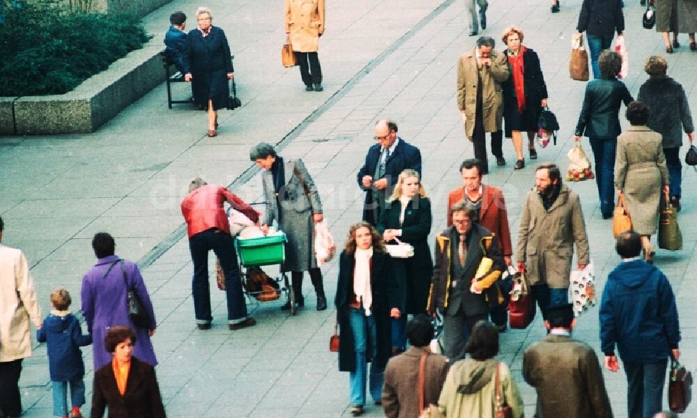 Die Fotografien, die heute wie Zeitkapseln wirken, zeigen eine Stadt, die längst verschwunden ist – und doch in den Erinnerungen vieler fortlebt. Männer in grauen Anzügen, Frauen in bunten Mänteln und mit Dauerwelle, Kinder, die in ihren Schuluniformen über den Platz rennen. Der Fernsehturm, das weithin sichtbare Wahrzeichen, ragt stolz über das Treiben und erinnert daran, wie sehr die DDR auf Fortschritt und Modernität bedacht war.