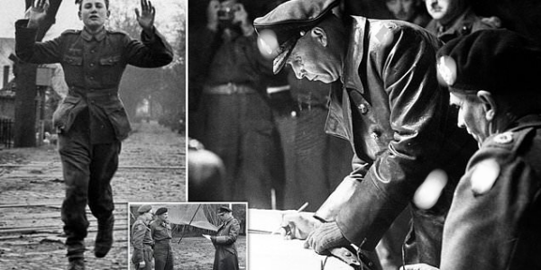 Letzte Tage des Krieges: Ein junger deutscher Soldat ergibt sich.H