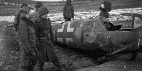 Januar 1945, Frankreich: Ein junger deutscher Pilot und seine abgeschossene Messerschmitt Bf 109 bei Halstroff – das Ende eines letzten Einsatzes am Himmel über der Mosel.H