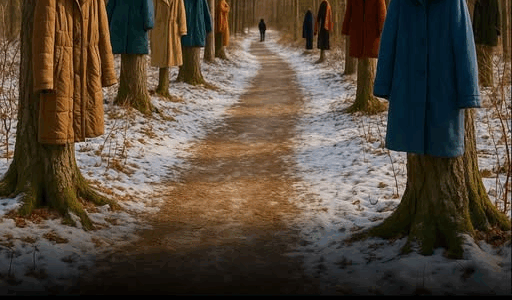 Forêts hivernales d’espoir : vêtements suspendus au Canada pour les personnes dans le besoin.H