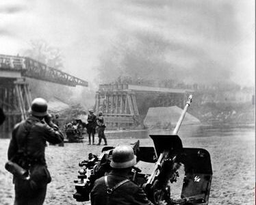 Deutsche Soldaten an der zerstörten Brücke – Die letzten Tage des Krieges, Deutschland 1945.H
