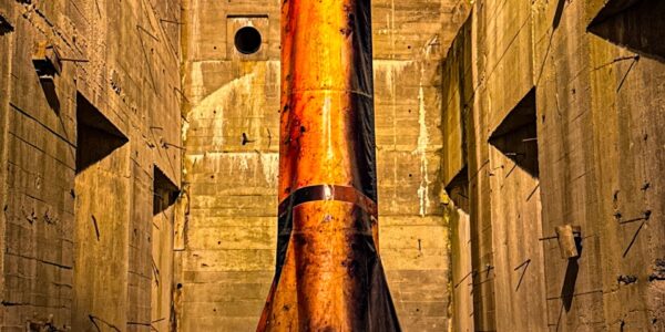 as Foto, aufgenommen im massiven Betonkomplex des Blockhaus von Éperlecques in Nordfrankreich, zeigt einen Ort, der wie kaum ein anderer für die geheimen und zerstörerischen Ambitionen des Dritten Reiches steht. Hier sollte eine der modernsten Waffen des Zweiten Weltkriegs vorbereitet und gestartet…