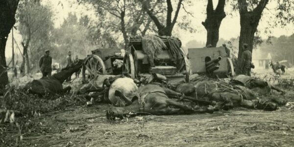 Der Preis des Krieges – Gefallene Pferde und zerstörte Geschütze im Zweiten Weltkrieg in Deutschland.H