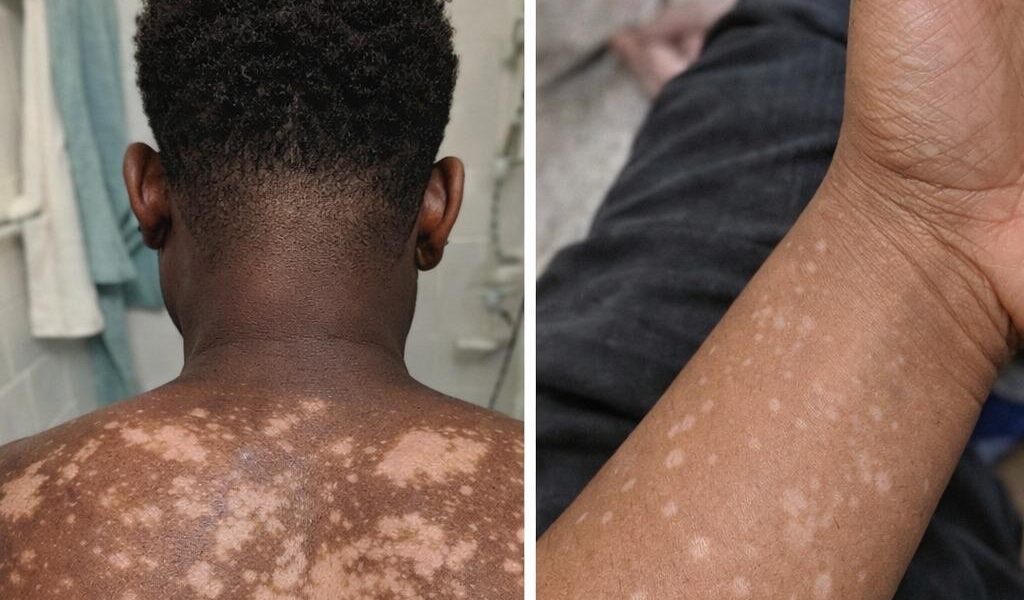 Piccole macchie bianche, spesso descritte come puntini piatti, rotondi o ovali di dimensioni comprese tra 2 e 10 mm, compaiono tipicamente sulle zone esposte al sole come braccia, gambe, spalle e schiena. Sulla pelle più scura, appaiono come chiazze visibilmente più chiare che non si abbronzano in modo uniforme. Questo quadro è spesso associato a una condizione nota come ipomelanosi guttata idiopatica (IGH), talvolta chiamata “macchie solari bianche” o “lentiggini inverse”.
