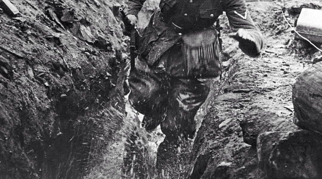 Es gibt Bilder aus dem Zweiten Weltkrieg, die mehr sagen als jede Zahl oder Statistik. Das Foto eines Wehrmacht-Melders, aufgenommen im Frühjahr 1943 an der Ostfront, gehört zu diesen seltenen Momentaufnahmen. Man sieht einen jungen Soldaten, der mit verzerrtem Gesichtsausdruck durch einen schlammigen Schützengraben rennt, während Wasser aufspritzt und der Regen die Erde in eine tödliche Falle verwandelt hat. In seiner Hand hält er eine Tasche mit Meldungen – vielleicht Befehle, vielleicht Hilferufe, vielleicht die letzte Chance, eine Einheit vor dem Untergang zu retten.