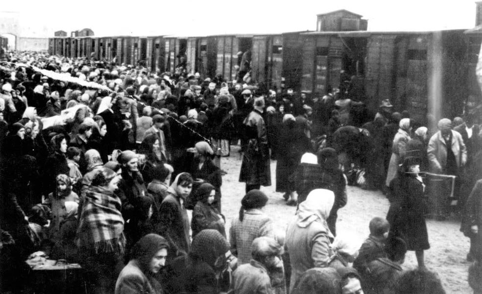 Diese Aufnahme stammt vermutlich aus dem Frühsommer 1944, als Tausende ungarischer Juden nach Auschwitz deportiert wurden. Die Menschen, die man hier sieht, ahnen nicht, was sie erwartet. Viele von ihnen hielten Gepäck in den Händen – ein Zeichen der Hoffnung, dass es sich nur um eine „Umsiedlung“ handle. Die brutale Wahrheit war jedoch: Für die meisten war dies der letzte Gang ihres Lebens.