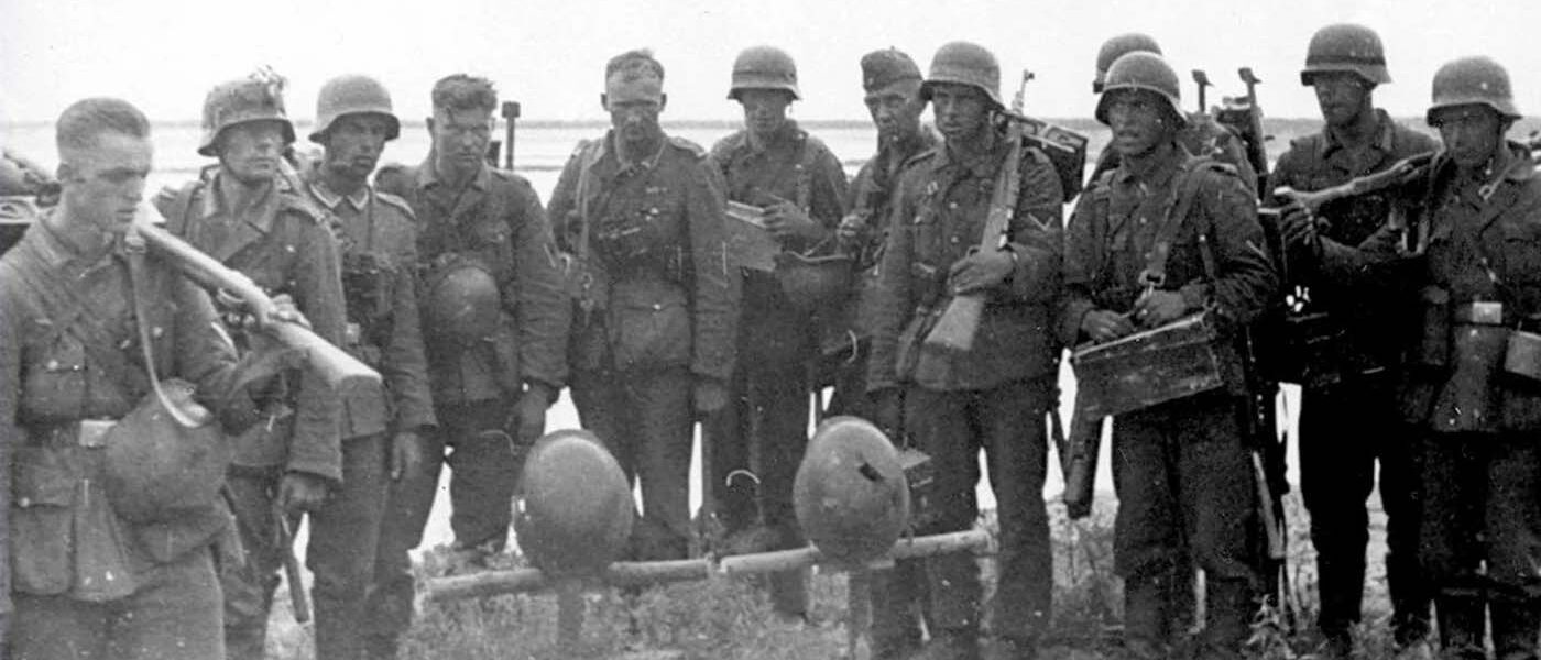 Deutsche Soldaten warten auf den Angriffsbefehl.