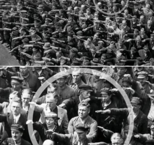 - Deutschland 1936 – bei einer Kundgebung während der Olympischen Spiele: Einer verweigert den Gruß, während Tausende folgen!.H