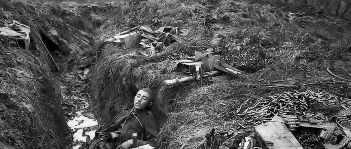 Dieses Foto zeigt keinen Angriff, keinen heroischen Moment und keinen Sieg. Es zeigt das Ende eines einzelnen Lebens. Ein deutscher Soldat liegt reglos in einem Schützengraben bei Hargicourt in Nordfrankreich, aufgenommen am 19. September 1918, nur wenige Wochen vor dem Ende des Ersten Weltkriegs. Seine Waffe liegt noch in Reichweite, sein Körper dort, wo er bis zuletzt ausgeharrt hat. Die Originalunterschrift lautet nüchtern und zugleich pathetisch: „Er hatte mutig bis zuletzt mit seiner Waffe gegen den angreifenden Feind gekämpft.“ Doch das Bild erzählt eine weit komplexere Geschichte.