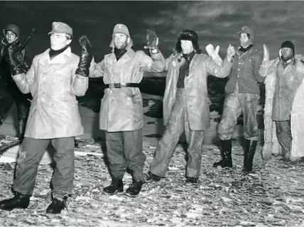 In den letzten Monaten des Zweiten Weltkriegs brachen die deutschen Linien an der Ostfront endgültig zusammen. Nach der sowjetischen Winteroffensive Anfang 1945 rollten die Truppen der Roten Armee unaufhaltsam nach Westen. Städte wie Königsberg, Breslau und Posen wurden eingeschlossen, und hunderttausende deutsche Soldaten gerieten in Gefangenschaft. Viele von ihnen, wie die Männer auf diesem Bild, kamen aus Einheiten, die kaum noch organisiert waren – zusammengestellte Gruppen aus Rekruten, Verwundeten und alten Männern, die nur eines wollten: überleben.