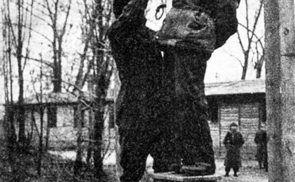 Als nächstes führte uns der Kommandant, wie Fritzsch damals noch hieß, in die Küche und sagte: „Ihr seid jetzt in einem Konzentrationslager. Es gibt hier keinen Weg raus. Ihr habt Nummern. Ihr seid keine Menschen mehr, ihr seid nur noch Nummern. Ihr müsst eure Nummer auf Deutsch kennen.“ Auf dem Küchendach waren die … es gibst kaine … diese Meilensteine. Und er sagt: „Für euch gibt es hier nur einen Weg raus …“ und zeigt auf das Krematorium.