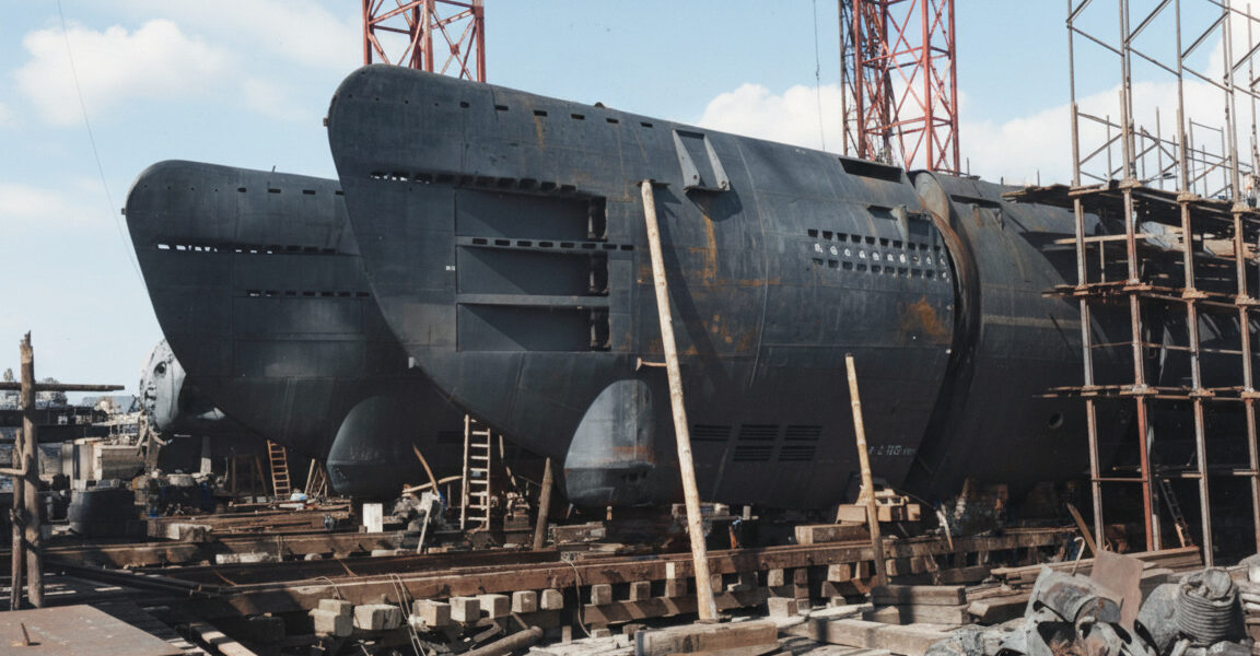 Als die Alliierten im Mai 1945 Bremen erreichten, fanden sie eine gespenstische Szenerie vor. Reihen von unfertigen Rümpfen lagen in den Docks, teils zur Hälfte zusammengeschweißt, teils schon mit Turm und Sehrohr versehen. Auf manchen befanden sich noch Werkzeuge, als hätten die Arbeiter sie in letzter Sekunde fallen lassen, als die Sirenen ertönten. Der Krieg war vorbei, bevor diese Maschinen überhaupt das Wasser berührt hatten.