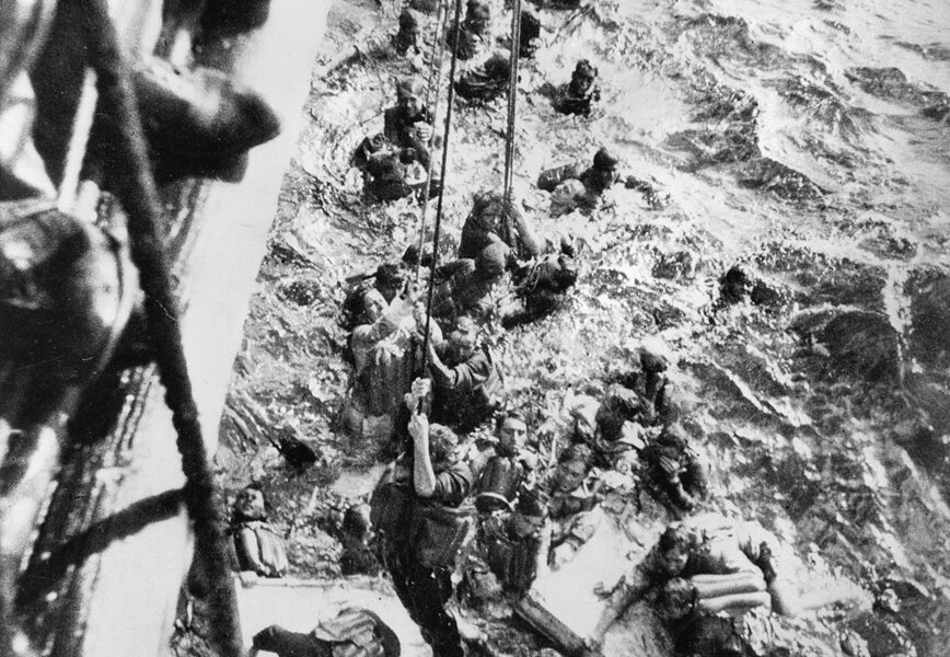 Die historischen Aufnahmen dieses Moments gehören heute zu den eindringlichsten Bildern der Seekriegsgeschichte: erschöpfte, ölverschmierte deutsche Matrosen, die mit letzter Kraft versuchen, sich an Leinen festzuhalten; britische Seeleute, die ihnen Arme entgegenstrecken; ein Gefühl von Dringlichkeit, das auf jedem Gesicht zu lesen ist. Der Atlantik schäumt dunkel, der Himmel ist grau, und während Körper aus dem Wasser gezogen werden, herrscht eine Stille, die fast unnatürlich wirkt – als würde das Meer selbst dieses tragische Ende begleiten.