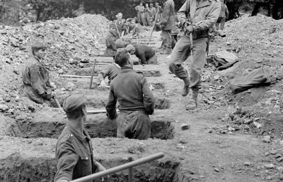 Ehre im Angesicht der Niederlage – deutsche Gefangene begraben ihre Kameraden, Normandie 1944.H