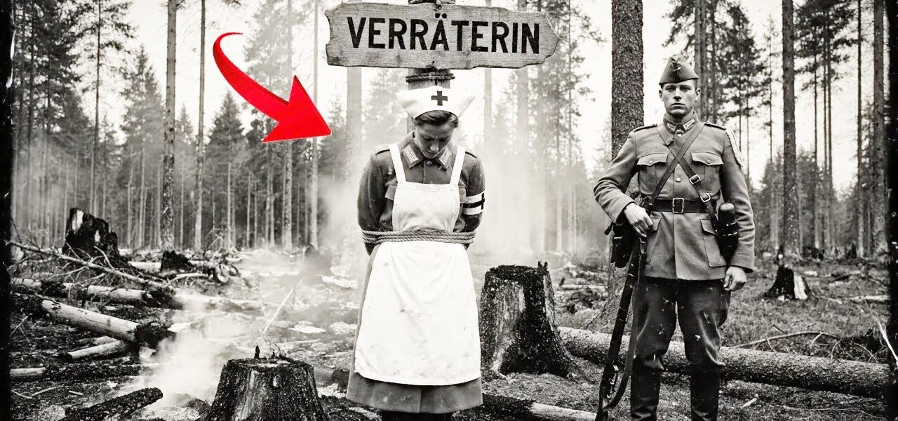 Ein amerikanischer Offizier fand eine deutsche Kriegsgefangene, die als Krankenschwester an einen Pfahl gefesselt war – auf dem Schild stand „Verräterin,H
