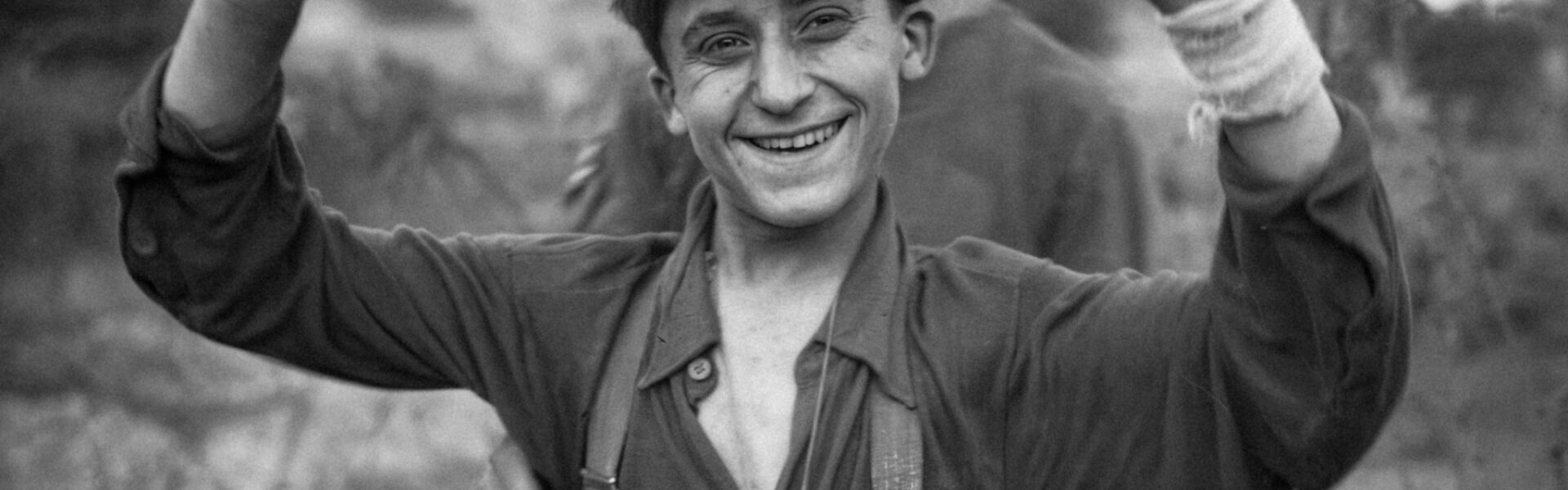 Es ist kein spöttisches oder siegessicheres Lächeln, sondern ein stilles, beinahe erleichtertes. In seinen Augen liegt etwas, das man selten auf Kriegsaufnahmen sieht – der Ausdruck eines Menschen, der gerade dem Tod entkommen ist. Vielleicht weiß er, dass der Krieg für ihn vorbei ist. Keine Angst mehr vor Bomben, keine Nächte in kalten Schützengräben, kein Befehl, der ihn in ein weiteres Gefecht schickt. Nur noch Stille, Gefangenschaft – und Leben.