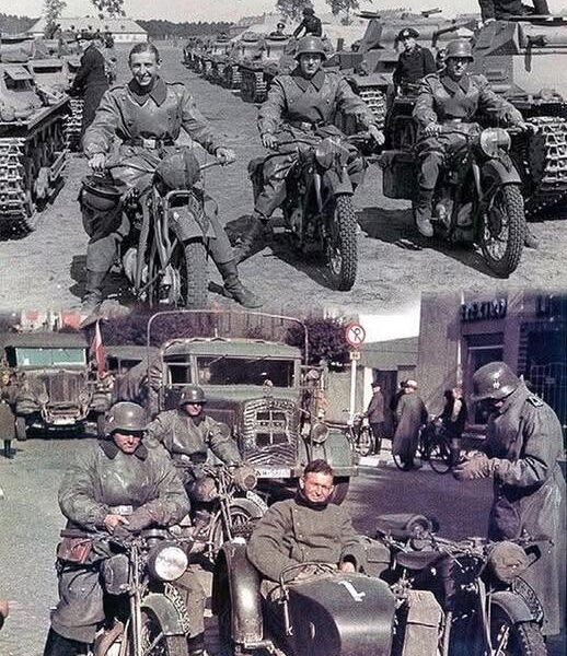 Die Nazis nutzten Motorräder als Schlüsselelement ihrer schnellen Angriffe, die zu Beginn des Krieges durch Holland, Polen und die Tschechoslowakei fegten.