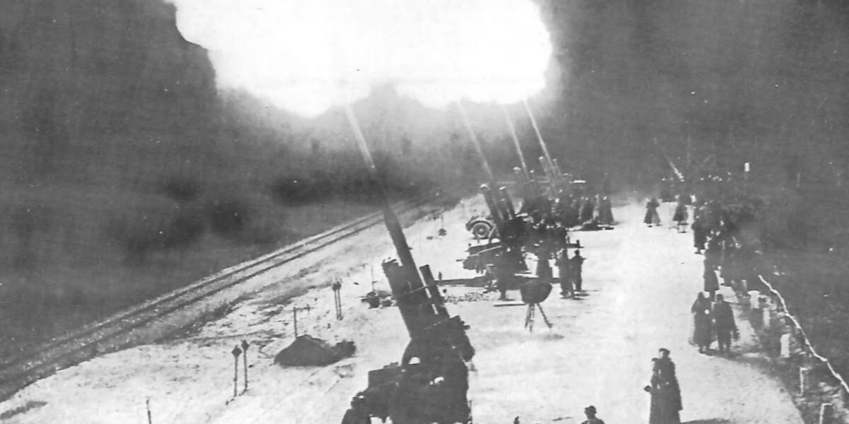 Das gezeigte Motiv, eingefroren in einem einzigen Augenblick, macht deutlich, wie der Krieg die Nacht verwandelte. Wo früher Ruhe und Dunkelheit herrschten, flammten nun in regelmäßigen Abständen grelle Blitze auf, gefolgt von grollendem Donner. Für viele Zeitzeugen war dieser Anblick untrennbar mit der Erinnerung an Angst, aber auch an Pflichtgefühl verbunden – je nachdem, auf welcher Seite der Front sie standen.