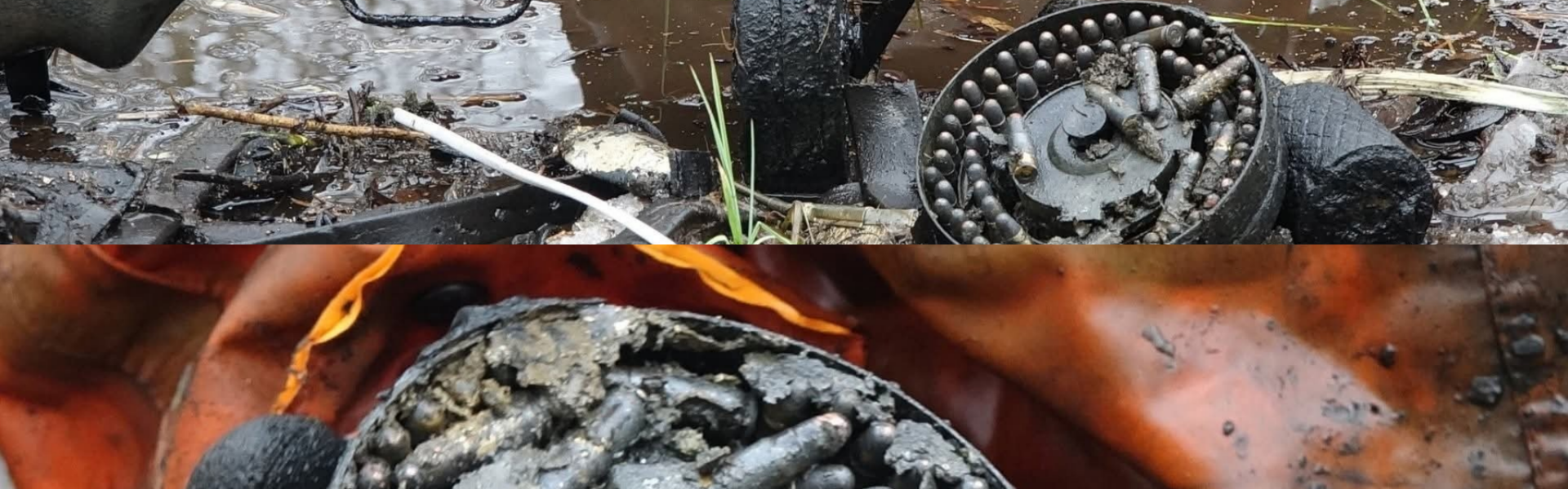 Das Team, das den Fund machte, bestand aus erfahrenen Suchern, die mit Metalldetektoren, Sonargeräten und Schlammpumpen arbeiteten. Einer von ihnen bemerkte ein ungewöhnliches Echo im Gerät, das auf ein größeres Metallobjekt unter der Oberfläche hindeutete. Als sie an der Stelle zu graben begannen, stießen sie zunächst auf eine verdächtige, zylindrische Struktur. Wenige Minuten später schälte sich aus dem kalten Sumpfwasser der Umriss einer metallenen Trommel heraus – das Trommelmagazin. Noch bevor das Team vollständig begriff, was sie in den Händen hielten, kam ein länglicher, schwerer Schatten zum Vorschein: der Lauf einer Maschinenpistole, bedeckt von jahrzehntelangem Schlamm, Moos und Sediment.