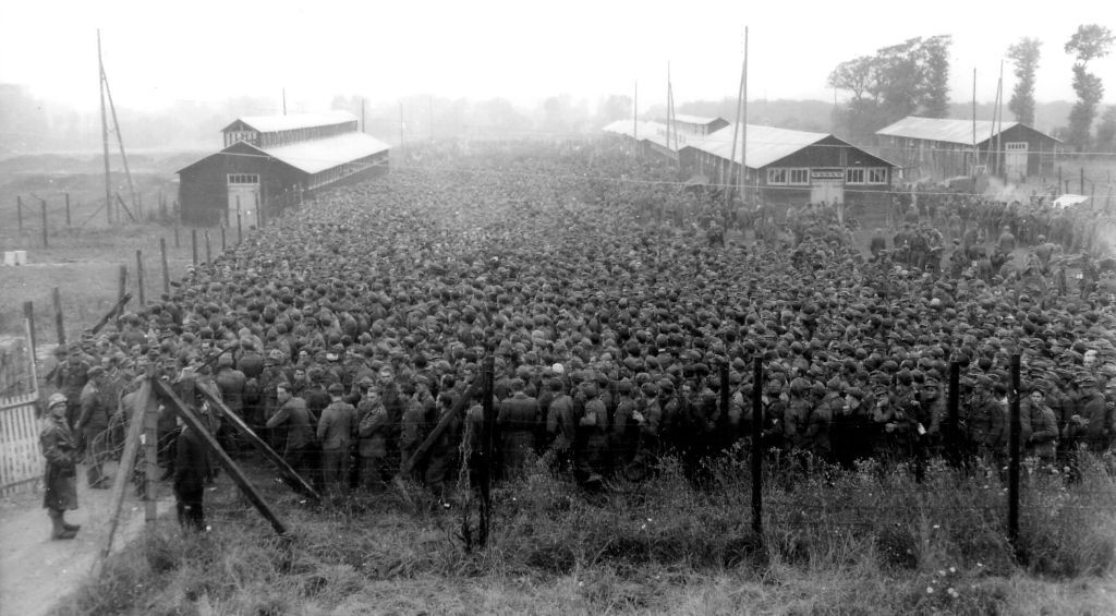 Das Bild spiegelt die Ausmaße dieses militärischen Zusammenbruchs wider. Nach wochenlangen Kämpfen in der Normandie war es den Alliierten gelungen, die deutschen Verbände einzukesseln. Zehntausende Soldaten gerieten in Gefangenschaft. In improvisierten Lagern, wie hier in Nonant-le-Pin, wurden sie unter freiem Himmel festgehalten, da die Dimension dieser Massenkapitulation jede vorherige Vorstellung sprengte.
