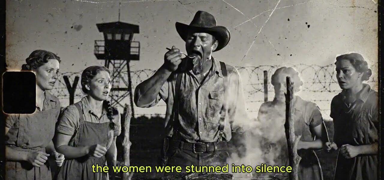 The scent wasn’t one they had expected to find in an American prison camp—it was sweet, rich, and utterly unfamiliar. As they turned their eyes toward the source, the sight before them was even more surprising. Beyond the barbed wire and towering guard posts, a group of American cowboys in denim shirts and wide-brimmed hats stood by a row of grills, expertly tending to sizzling ribeye steaks. The sound of meat hissing and juices bubbling over the flames filled the air, an overwhelming contrast to the malnourished existence the women had endured for so long.