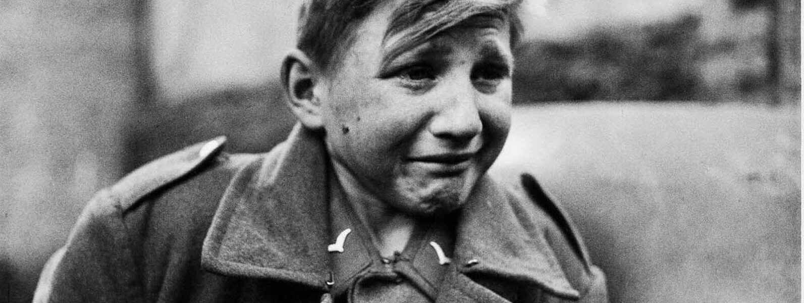 Der 16-jährige deutsche Soldat Hans-Georg Henke weint, als er am 3. April 1945 von der 9. US-Armee in Deutschland gefangen genommen wird.