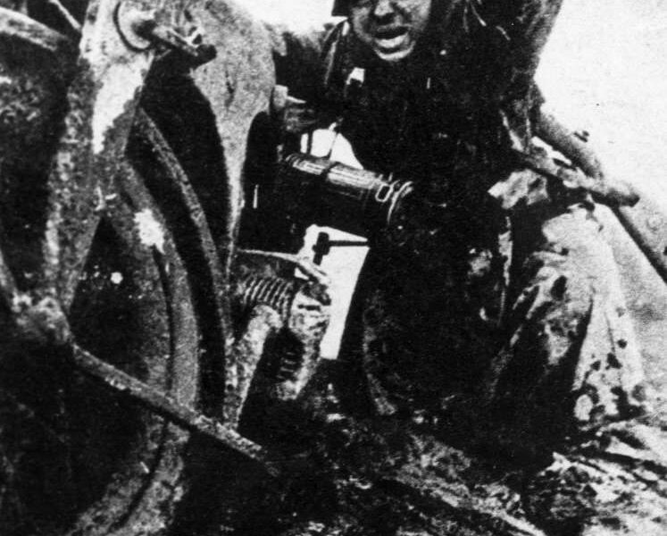 Auffällig ist auch die gesamte Körpersprache des Soldaten: Er lehnt sich mit aller Kraft gegen das Gewicht des Motorrads, sein Körper ist verdreht, seine Hände greifen verbissen nach dem Lenker. Schlamm spritzt, Kleidung klebt schwer am Körper, und die Schutzbrille auf seinem Helm ist wahrscheinlich schon lange nicht mehr klar genug, um wirklich durchzusehen. Doch seine Miene zeigt, dass Aufgeben keine Option war. Die Front stellte jeden Tag neue Anforderungen, und viele Soldaten mussten Entscheidungen treffen, die über Leben und Tod entschieden – manchmal waren es aber auch kleine Momente wie dieser, die den Unterschied machten: Kommt die Meldung rechtzeitig an? Erreicht der Fahrer sein Ziel? Bleibt die Verbindung zwischen den Einheiten bestehen?