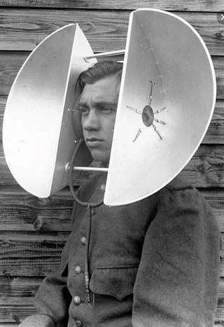 So absurd dieses Gerät heute wirkt, es war damals ein ernstzunehmendes Werkzeug der Luftverteidigung. Schon im Ersten Weltkrieg hatten Armeen erkannt, dass man feindliche Flugzeuge oft hören konnte, bevor man sie sah. Da die damaligen Flugzeuge laut waren und in niedrigen Höhen flogen, war das Ohr ein wertvolles Instrument. In den 1920er und 1930er Jahren, als die Flugzeuggeschwindigkeit und Flughöhen zunahmen, versuchten Ingenieure, diesen Vorteil technisch zu optimieren.