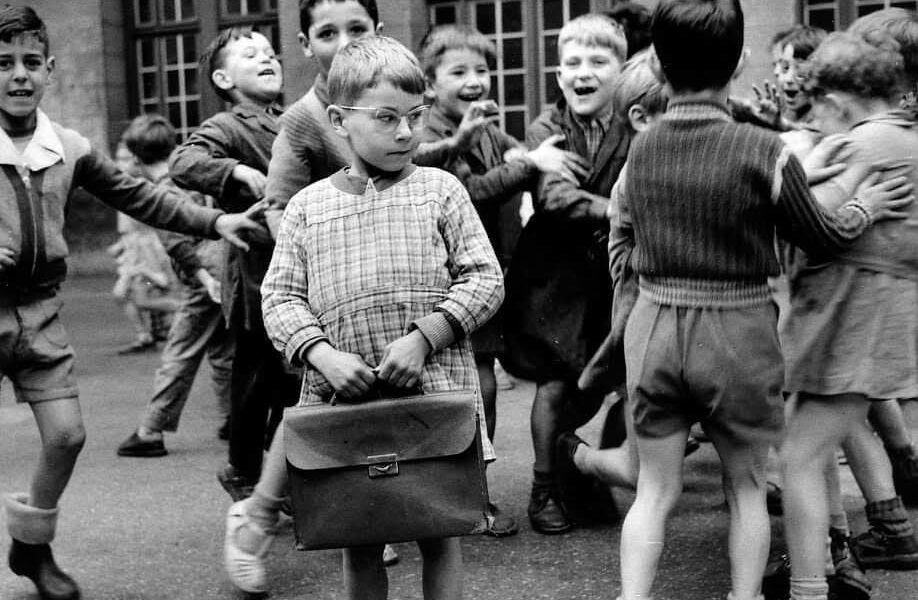 Des enfants jouant dans la rue dans le quartier de Belleville à Paris (XXe arrondissement) en 1956. C’est le cadre du livre illustré par Ralph Meyer dans lequel Eddy Mitchell raconte ses souvenirs de jeunesse. Photographie de Janine Niepce (1921-2007). Janine Niepce/Roger-Viollet