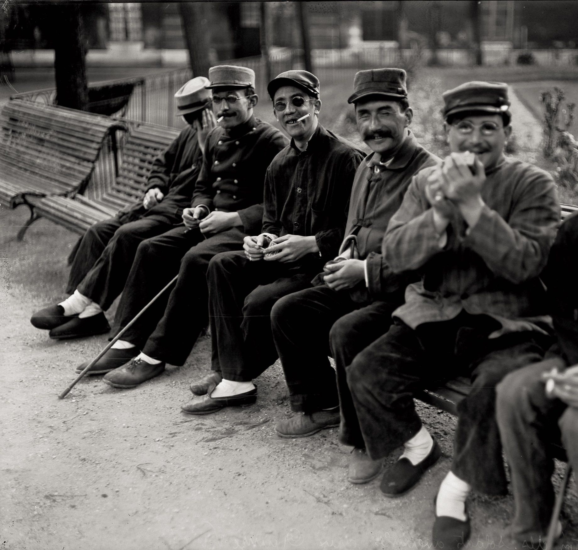 Soldats français aveugles (peut-être à cause des attaques au gaz) en convalescence à l’hôpital des Quinze-Vingts à Paris en 1916.
