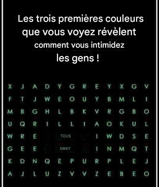 Les trois premières couleurs que vous voyez révèlent comment vous intimidez les autres.H